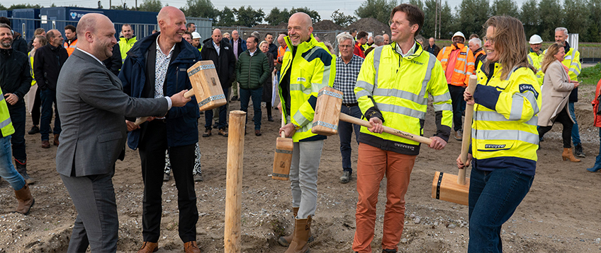 Door met een grote hamer symbolisch de eerste paal in de grond te slaan, gaven de netbeheerders en de gemeente Zuidplas officieel het startsein voor de bouw van het nieuwe elektriciteitsstation. Frank Wester (TenneT), Monique Hoogwijk (Liander) en Maarten Bijl (Stedin) vertegenwoordigden de netbeheerders. Namens de gemeente Zuidplas waren wethouders Wybe Zijlstra en Jan Willem Schuurman aanwezig.