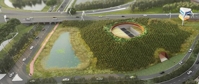 Het nieuwe station worden op bijzondere wijze in de omgeving ingepast. De gebouwen worden namelijk overkapt met een groene koepel waarop een mix van kleine bomen, struiken en kruiden groeit. In combinatie met de naastgelegen waterberging wordt hiermee ruimte gegeven aan biodiversiteit en natuur. Door deze afwerking gaat het station als een heuvel op in de omgeving. Hiermee wordt een robuuste toekomstbestendige stroombron gecreëerd die 40 tot 60 jaar meegaat.