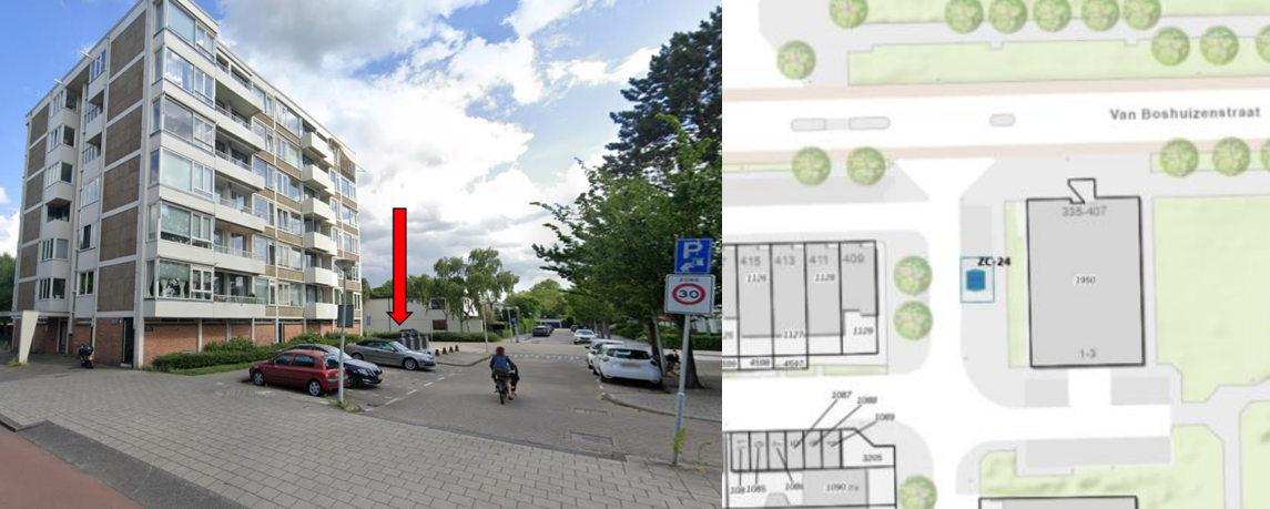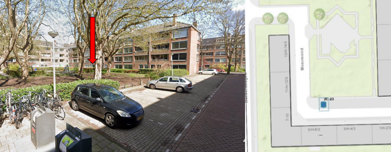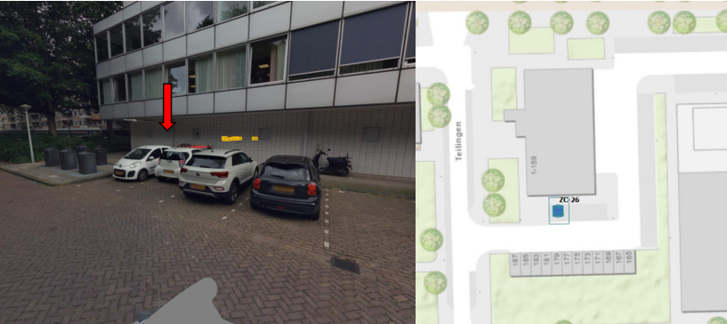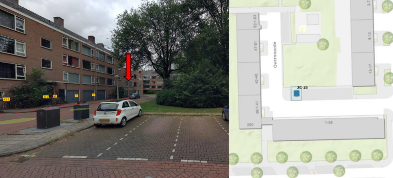 Op twee parkeerplaatsen naast de ondergrondse containers.