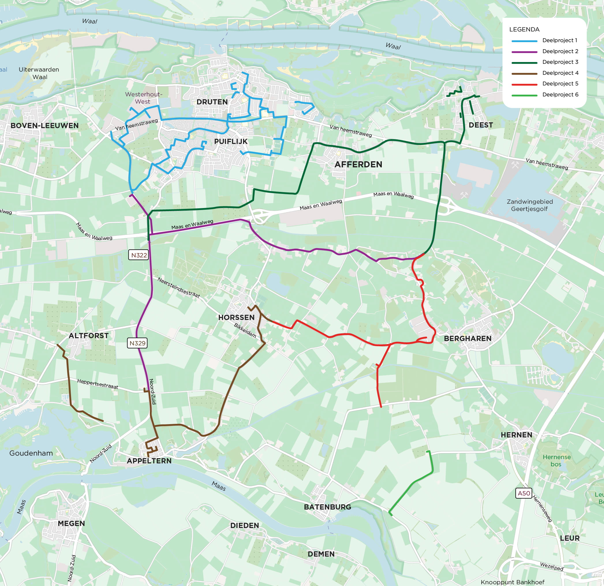 In en rondom Afferden, Druten, Horssen, Appeltern en Bergharen neemt de vraag naar stroom, én het opwekken ervan, snel toe. Het huidige stroomnet heeft onvoldoende ruimte om deze groei bij te houden. Daarom breiden wij het stroomnet in deze regio uit, zodat het beter aansluit op de toenemende vraag en het aanbod. Dit doen wij door meerdere nieuwe middenspanningsverbindingen aan te leggen, als onderdeel van het project Netuitbreiding Afferden. We plaatsen extra elektriciteitshuisjes en we leggen nieuwe kabels aan.