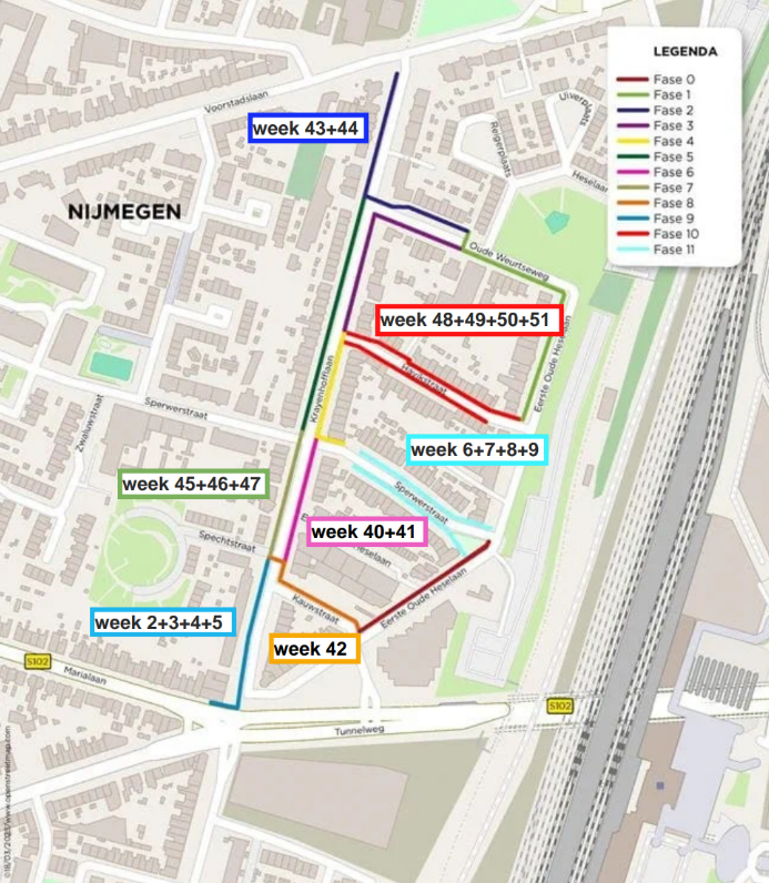 | 3 | Werkzaamheden gereed | Vervangen midden- en laagspanningskabels | Van MSR Oude Weurtseweg naar Krayenhofflaan 45 (hoek Havikstraat) |