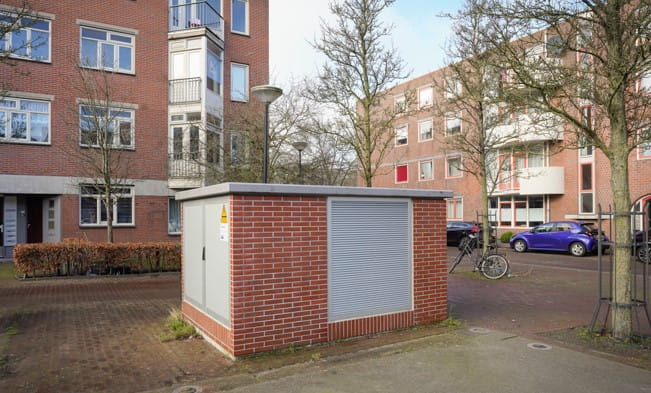 Het elektriciteitshuisje - ook wel elektriciteitsruimte genoemd - is een belangrijke bouwsteen van ons energienetwerk. Liander werkt met standaard elektriciteitshuisjes. De kleur kan verschillen. Hieronder ziet u als voorbeeld een elektriciteitshuisje met steenstrips.