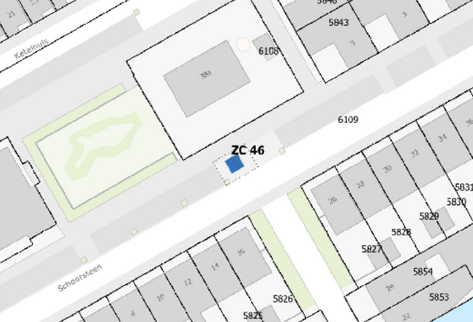 - Plek: op grond van een particulier. In het groen, naast de parkeerplekken. Er gaan geen parkeerplekken verloren.
