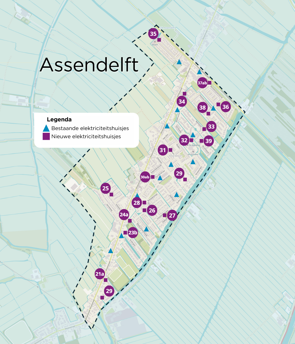 Kies het nummer van het elektriciteitshuisje om te zien waar deze precies komt te staan