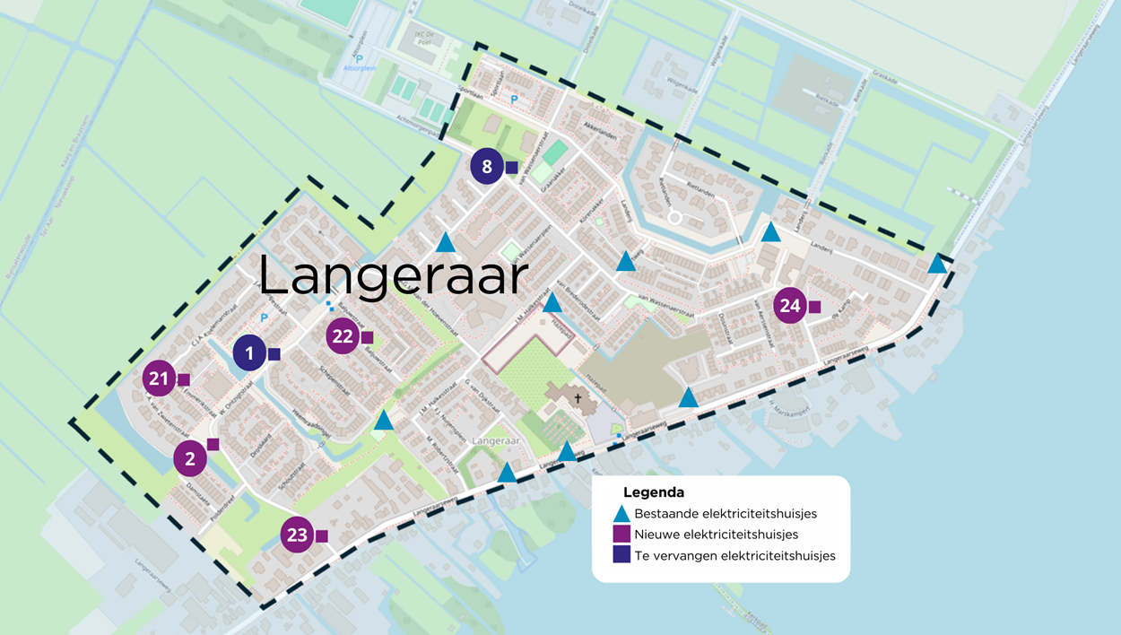 We breiden het stroomnet uit. Zodat dit kan werken zoals u van ons gewend bent. Er komen elektriciteitshuisjes bij. Hierdoor worden de kabels korter en wordt het stroomnet krachtiger. In gemeente Nieuwkoop gaan we aan de slag in Langeraar.